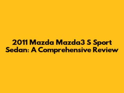2011 Mazda 3 S Sport: Review, Specs, & More