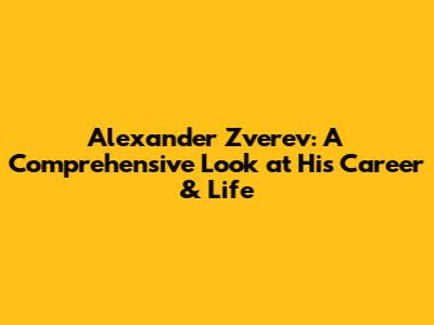 Alexander Zverev: A Comprehensive Look At His Career & Life