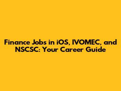 Finance Jobs In IOS, IVOMEC, And NSCSC: Your Career Guide