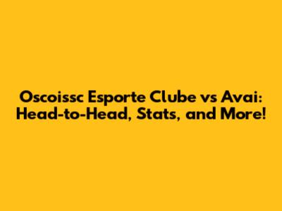 Oscoissc EC Vs Avai: Head-to-Head, Stats, And More!
